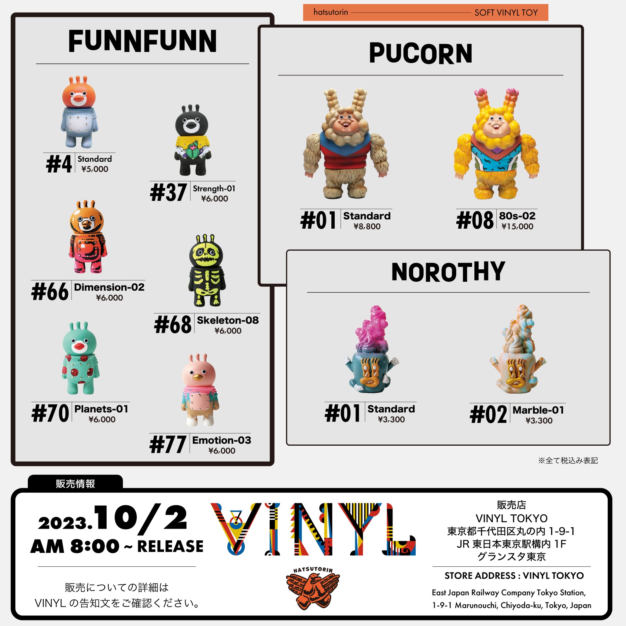 Hatsutorin's works will be on sales at VINYL TOKYO. We will be selling store limited colors and re-releases of the Hatsutorin Collection series.